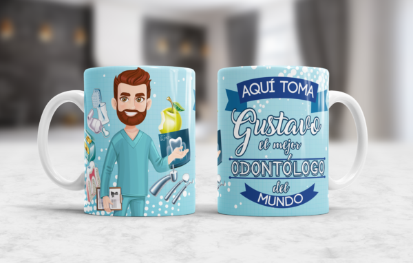 Taza con la frase: Aquí toma el mejor odontólogo del mundo. Regala esta taza a tu odontólogo, pareja, amigo o a quien desees, ideal para cualquier época del año.